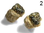 3 - 5 cm, auf größenmäßig angepasstem Gestein; Fossil