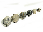 Schlangeneier mit Schlupf. Jungtertiär; Untermiozän (Aquitan; Hydrobienkalk). Steinbruch bei Neuleiningen SW Grünstadt SW Worms/Rheinland-Pfalz. Ca. 2 cm.